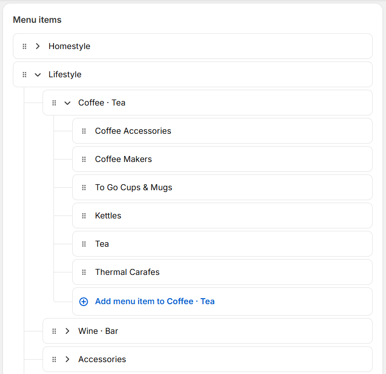 Each third level of navigation will get split into its own column of links. For example, the layout above was created by the menu below: