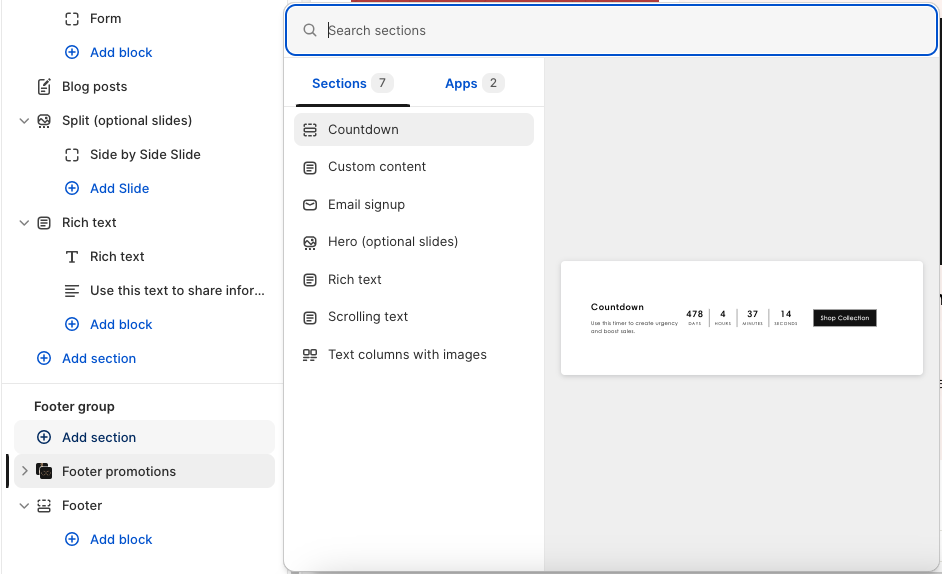 The Footer now has the ability to add 7 additional sections besides the standard two mentioned above.