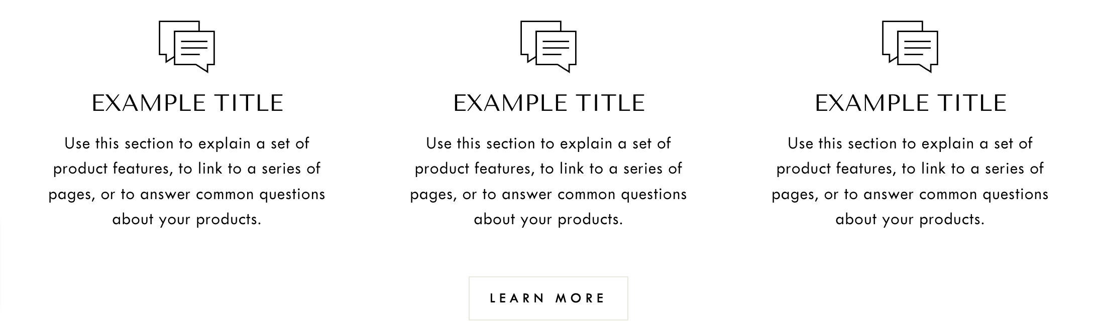 This section can be used for various purposes to enhance your store's user experience and deliver information visually, such as product features or benefits, service offerings, pricing plans, how It works, team members, membership benefits, and so on. The possibilities are endless.