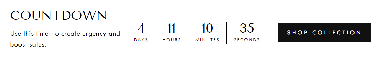 The Countdown timer is a great feature that can be used to highlight limited-time promotions or build anticipation for an upcoming sale or product launch.