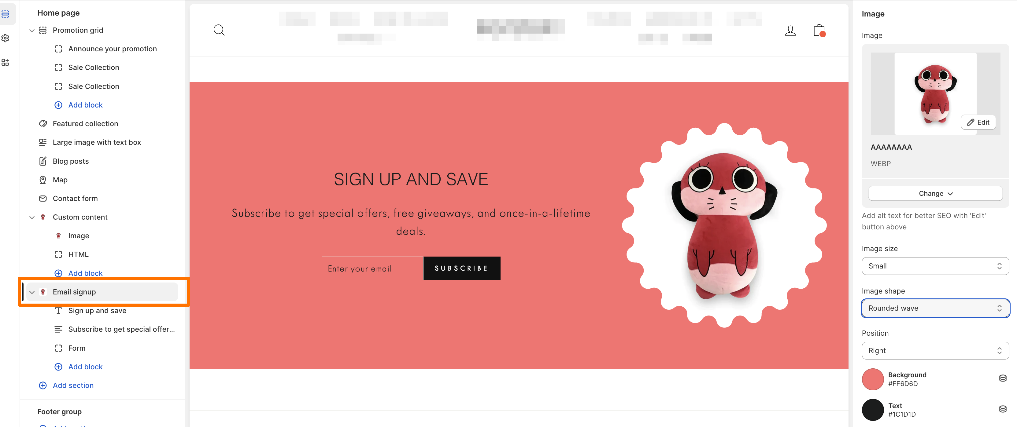 Customize it in the theme editor to engage your customers by adding an image for better SEO, image shape, custom text, background, etc.