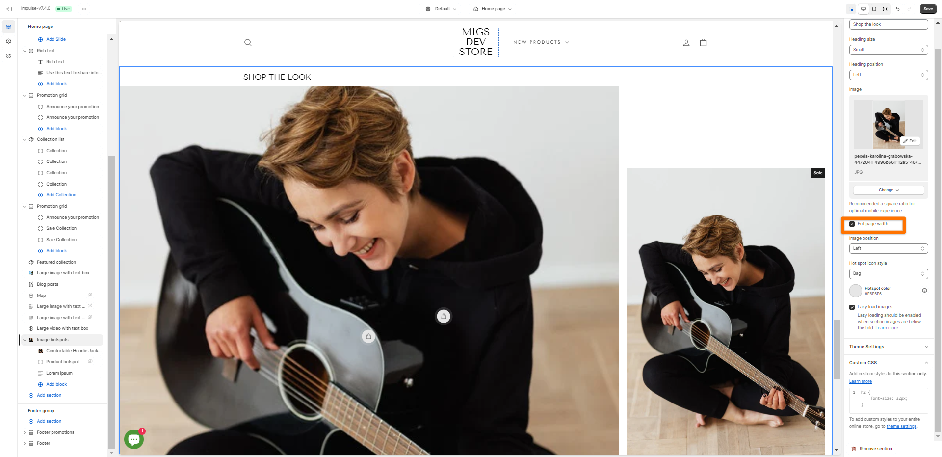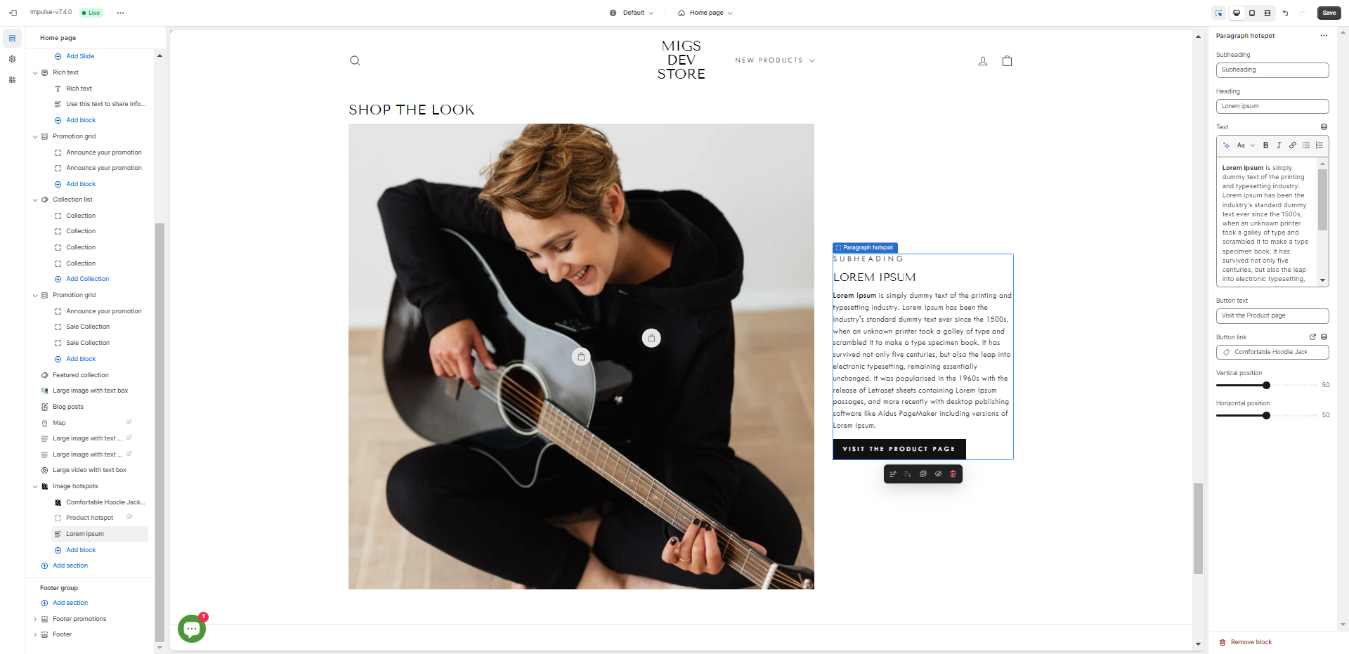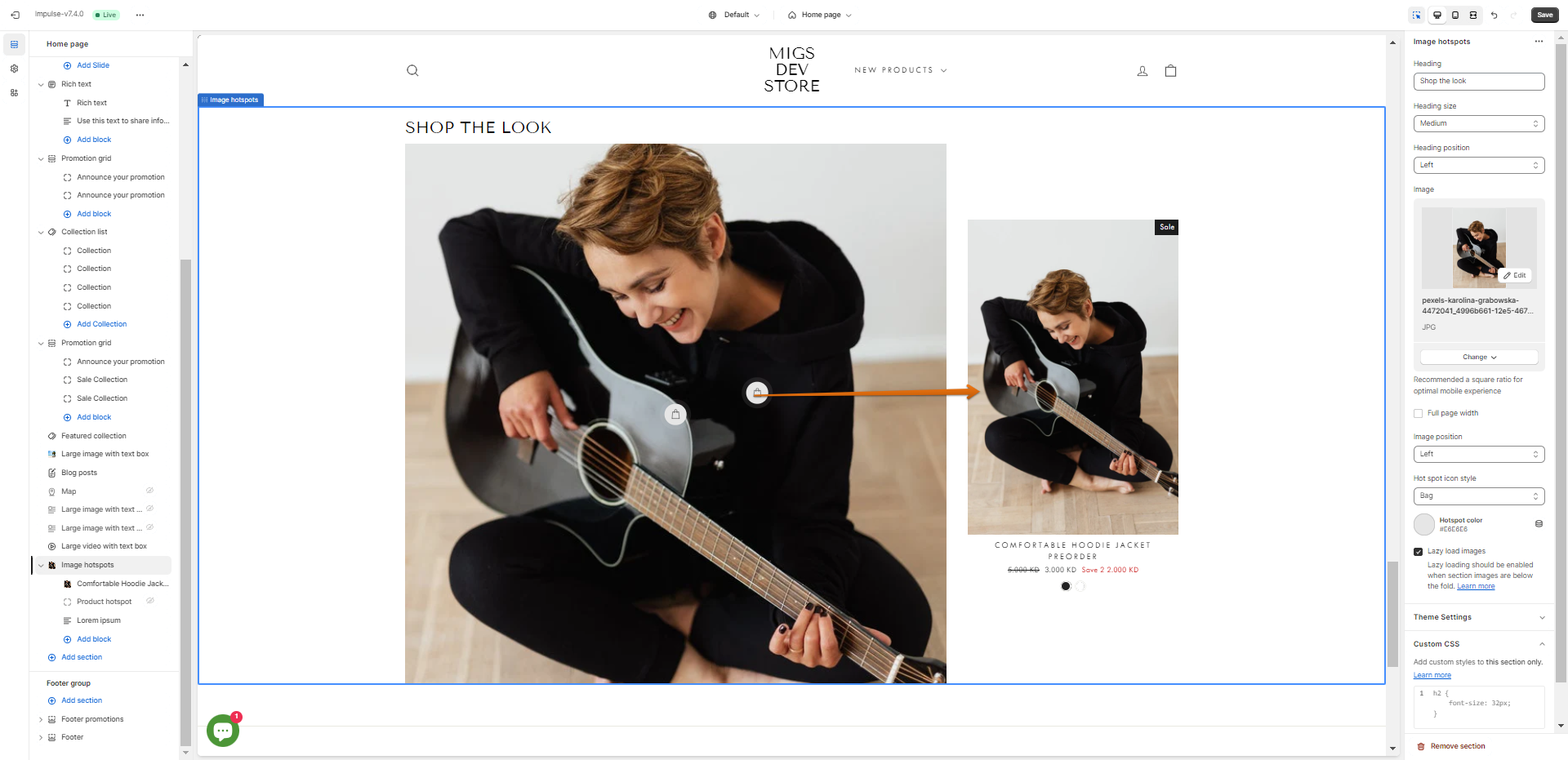 You will find several customization options like Image position, Full-page width, hotspot icon style, hotspot color, and lazy load images to suit your preferences.