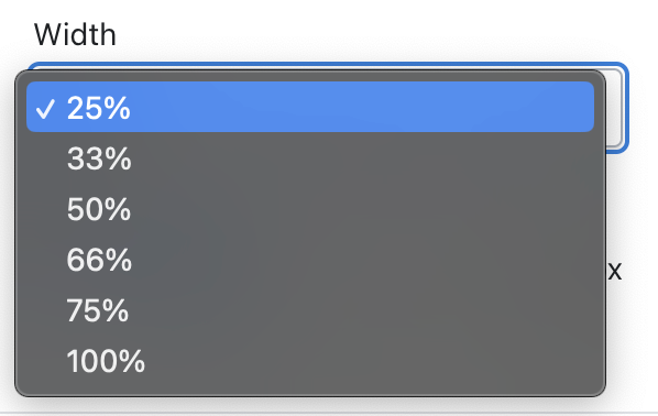 Within each block, you have the option of adjusting the width to show a single block at 100%, or up to 4 blocks, each at 25% width of the row.