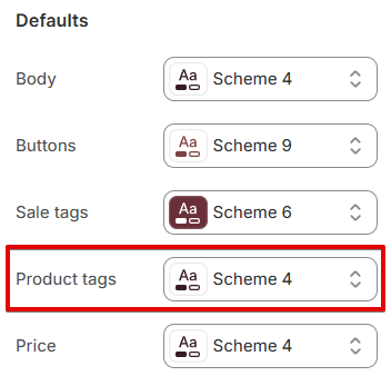 The tag text and background colors follow the color scheme selected under Theme settings > Colors. Note that the texture from the color scheme is not applied.