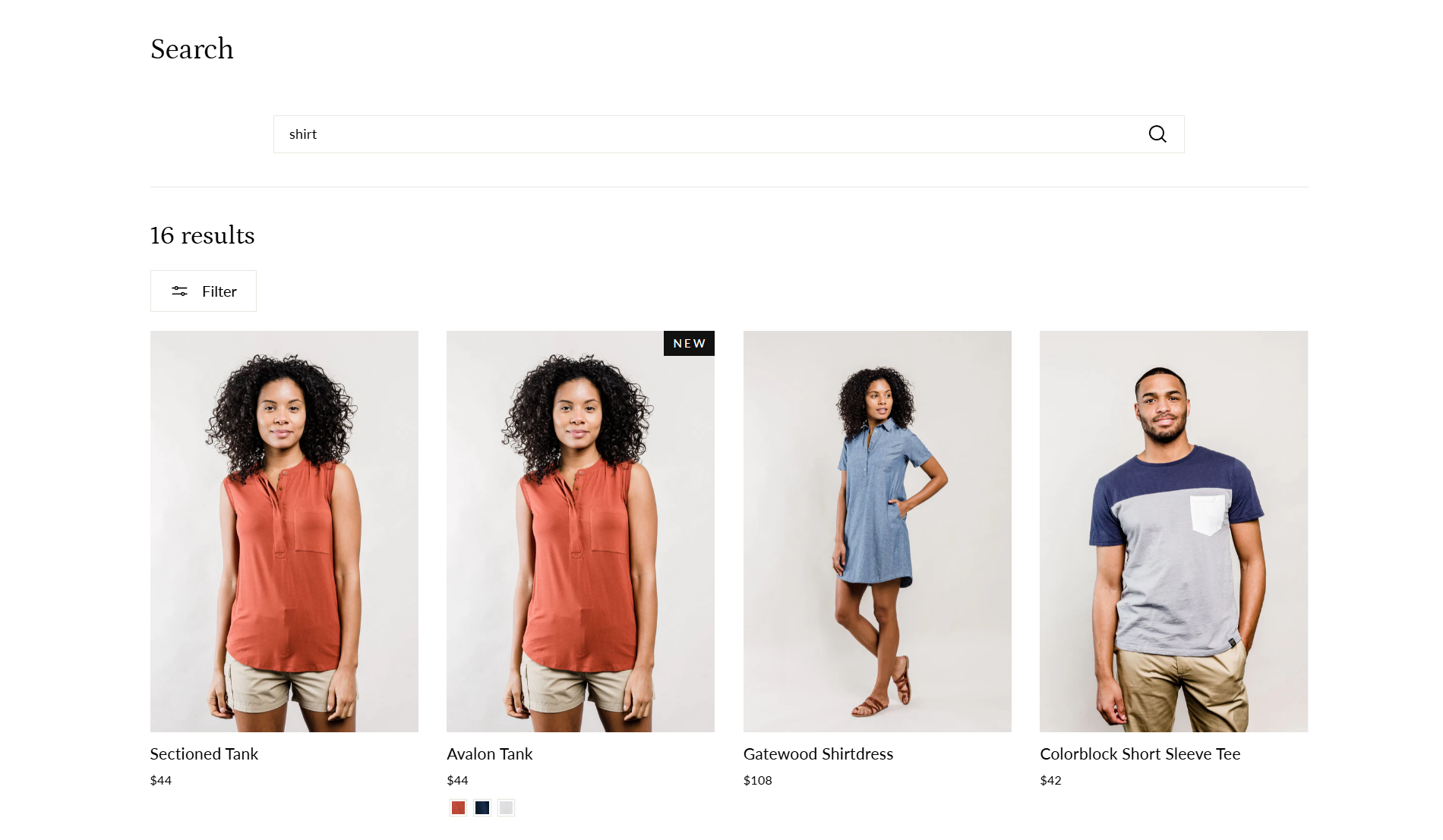 The Search results page is displayed when a customer performs a search on your store, showing relevant products and content.
