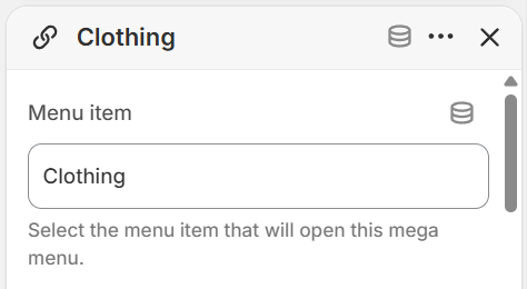 In the Menu item field, add the name of the top-level navigation link you want to use for the mega menu.